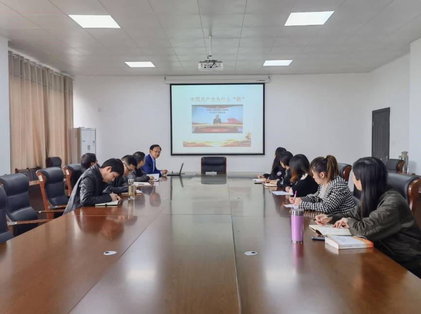 4月7日下午,机关党总支第一党支部在图书馆第三会议室召开专题学习会议,集体学习党史专题讲座《中国共产党为什么“能”》,会议由党支部书记刘文东主持。