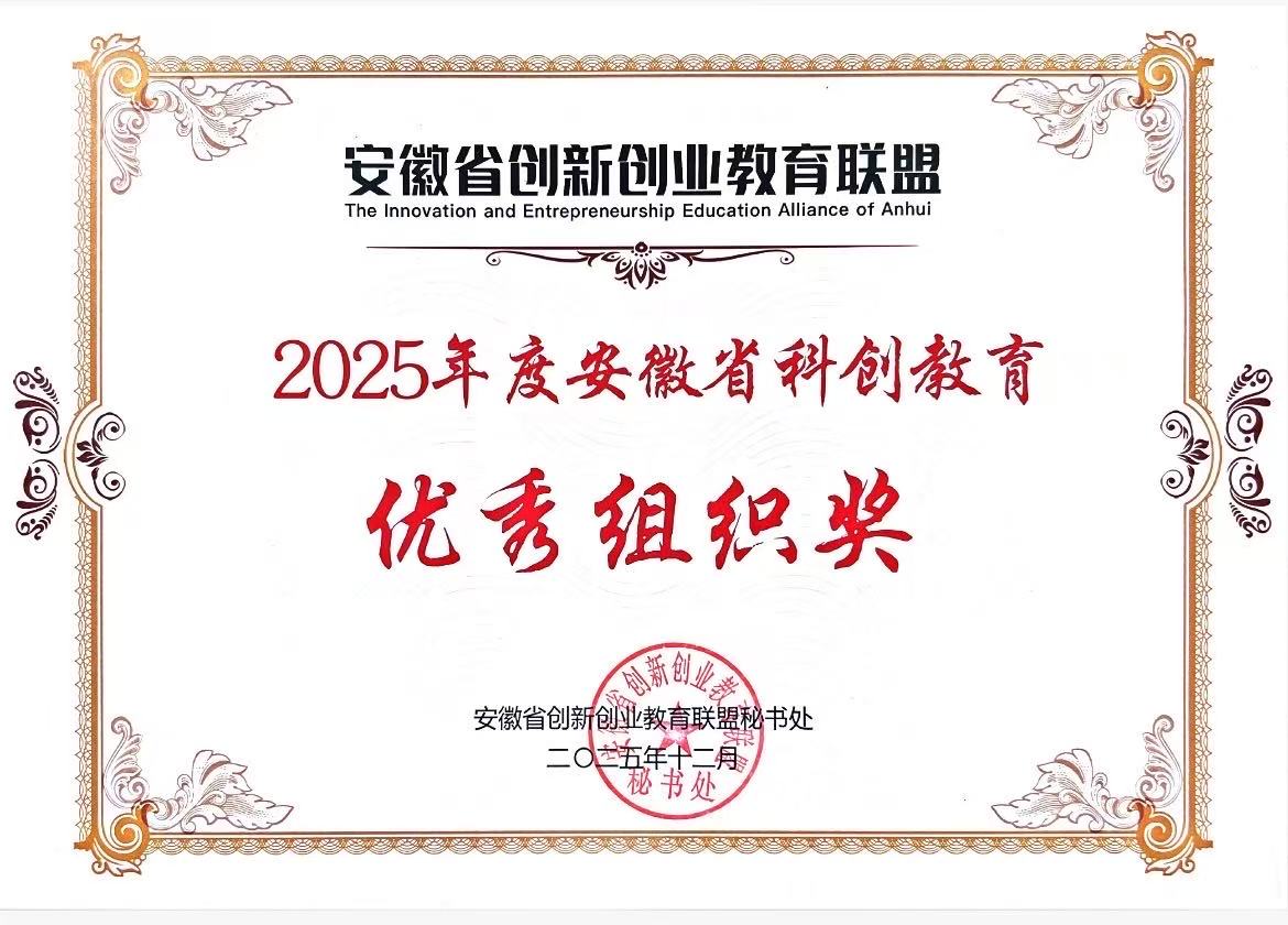本次论坛以“科教赋能,创育兴皖”为主题,围绕创新创业课程体系建设、实践平台搭建、师资培养与项目孵化等议题展开深入交流。在联盟大会表彰环节,会议公布了2025年度安徽省创新创业教育相关表彰名单。我校在联盟单位中荣获“2025年度安徽省科创教育优秀组织奖”,1名教师获评“安徽省中级科创导师”荣誉称号。两项荣誉的获得,是安徽省创新创业教育联盟对我校创新创业教育工作的充分肯定,也彰显了我校在科创人才培养领域的持续深耕。