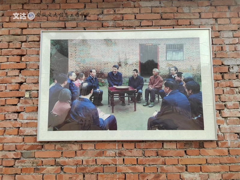 8月16日,实践团队抵达金寨县大湾村,新建的民居民宿已是一道亮眼的风景。在陈家老屋门前座椅仍按六年前的样式摆放着,侧屋的墙上挂着当年座谈的大幅照片,习近平总书记走访陈爷爷的画面仿佛历历在目。陈泽申老人与我们进行促膝长谈,陈老先生回忆习近平总书记来到大湾村时的情景,他描述到:“习近平总书记非常平易近人,他把人民装进心里,他的到来让村民们倍感幸福,深受鼓舞。”2019年,大湾村顺利摘帽,走上乡村振兴的康庄大道。通过陈老先生微党课,实践团队的同学们听得热血沸腾,深刻感受到了大湾村祥和幸福的农家生活。