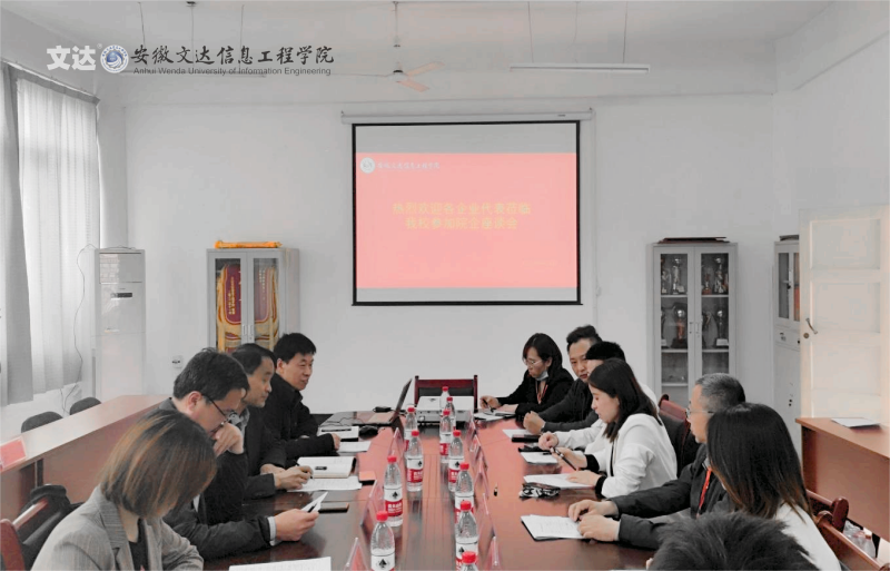 本次座谈会邀请了上海百川名品、北京天奕时代创意设计、南京中浩信息科技、安徽德瑞克装饰工程、安徽之达数据研究院、安徽格林晟科技、安徽声讯信息技术、合肥升谷物联科技、合肥香菜科技等9家企业代表参会。张孟资介绍了学院基本情况和专业特色。各企业代表分别介绍了公司规模、区域市场分布、业务涵盖范围等情况,对企业招聘毕业生岗位需求作了详细说明,并希望与学院进一步加强学生就业和产学研等方面的合作。参会企业共提供了200多个就业岗位。