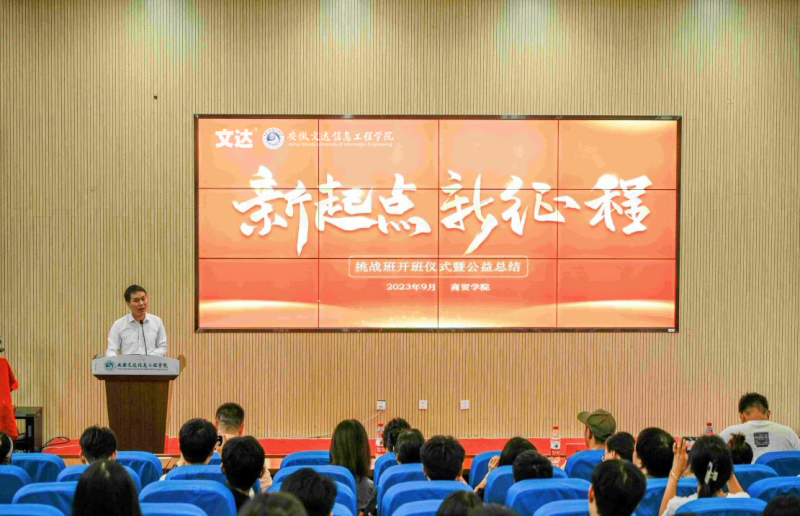 助力爱心公益,弘扬徽商精神。开班仪式上,金蕾对五月份以来同学们所开展的创业实践进行了总结,向大家介绍挑战班的日常工作以及后续发展方向。杨明向参加本次仪式的老师和同学们讲述了挑战班从成立到发展的过程以及校企合作的成功案例,并表示希望与学校携手奋进,实现学校、企业、学生三方共赢。刘欣就商贸学院的发展定位、专业设置、产教融合等方面的成果进行阐述,对挑战班成员寄予厚望。