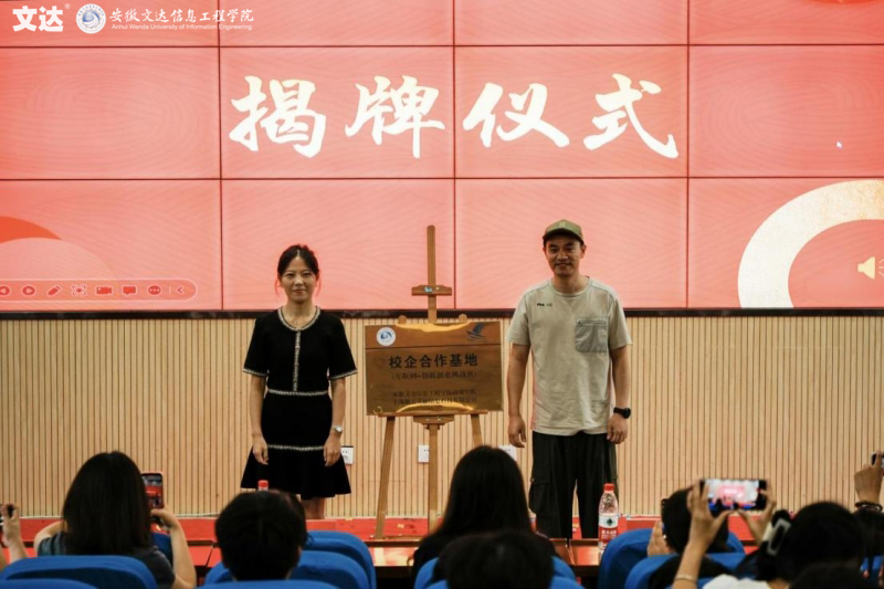 刘欣和杨明共同为“‘互联网+’创新创业挑战班”校企合作基地揭牌。