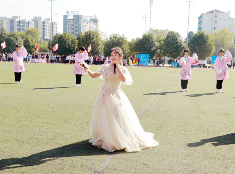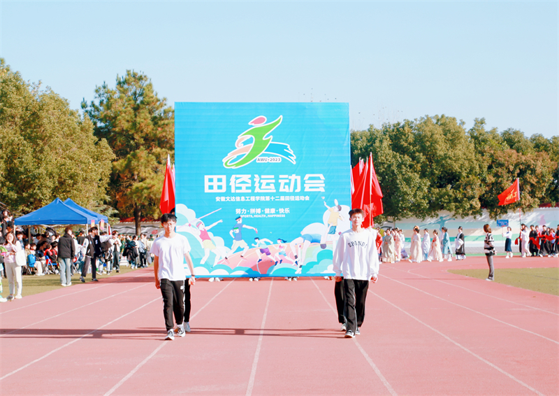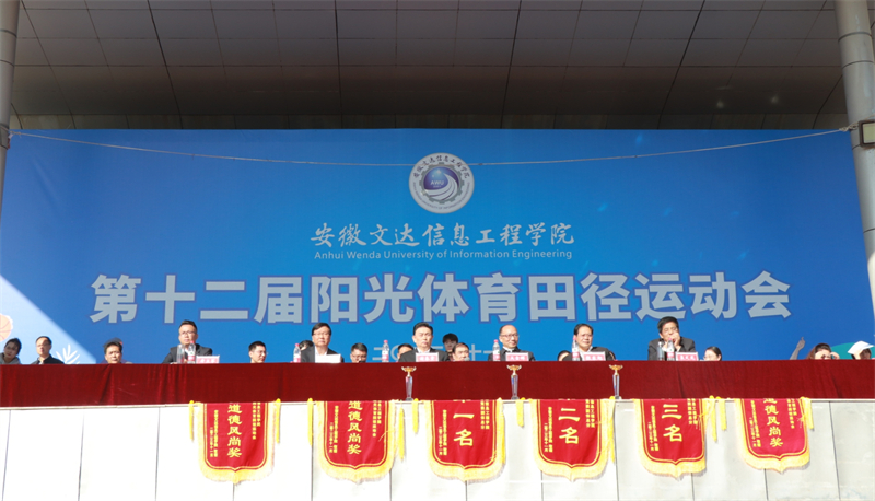 入场结束后,全体起立,奏唱国歌。谢春贵宣布安徽文达信息工程学院第十二届阳光体育田径运动会开幕。