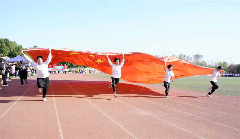 张穗萌作开幕式致辞。他首先代表学校党政领导班子,向本届运动会的隆重召开表示热烈祝贺,向参加此次运动会的全体运动员、裁判员表示诚挚问候,向筹备本届运动会的组委会及全体工作人员表示衷心感谢。他指出,学校高度重视体育教育教学工作,坚持竞技体育与群众性体育活动两手抓,大力推进校园体育文化建设,不断提升师生员工体育运动的参与度。过去的一年里,学校以阳光体育活动、体育俱乐部为依托,广泛开展体育教育教学改革、体质健康测试、体育文化传播、赛事组织等活动,取得了一系列优异的成绩。他强调,全体运动员在发扬“更快、更高、更强、更团结”奥林匹克精神的同时,坚持“友谊第一,比赛第二”的竞赛精神,遵守规则,遵守纪律,注意安全,以高昂的斗志、顽强的精神积极应赛;全体裁判员坚持公平公正、实事求是的原则,恪尽职守,牢固树立安全第一意识,做到公正裁判、热情服务,确保各项竞赛顺利进行;全体工作人员,发扬奉献精神,各尽其职、通力合作,为运动会提供优质服务,全力做好后勤保障;全体同学要提高环保意识、安全意识,遵守纪律、服从指挥,做文明观众,为比赛创造健康和谐、友爱互助的良好氛围。