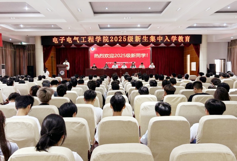 9月28日上午,电子电气工程学院2025级新生集中入学教育在图书馆五楼学术报告厅举行。学院党总支书记杨红兰,副院长张少巍,党总支副书记、副院长崔光竹,院长助理董昀,各教研室主任,全体新生班辅导员及全体新生共同参加活动。