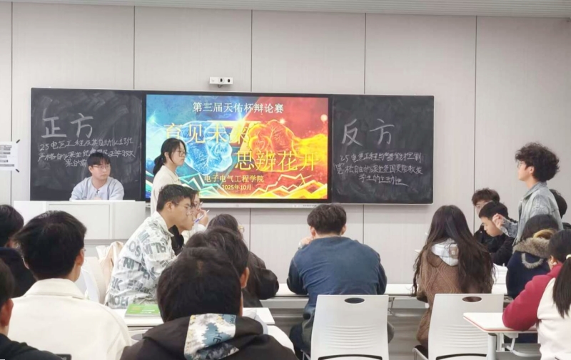 为迎接教育部本科教育教学审核评估,强化学风建设,10月22日,电子电气工程学院第三届“天佑杯”辩论赛正式开幕。本届赛事以“育见未来,思辨青春”为主题,全院班级均组队参与。