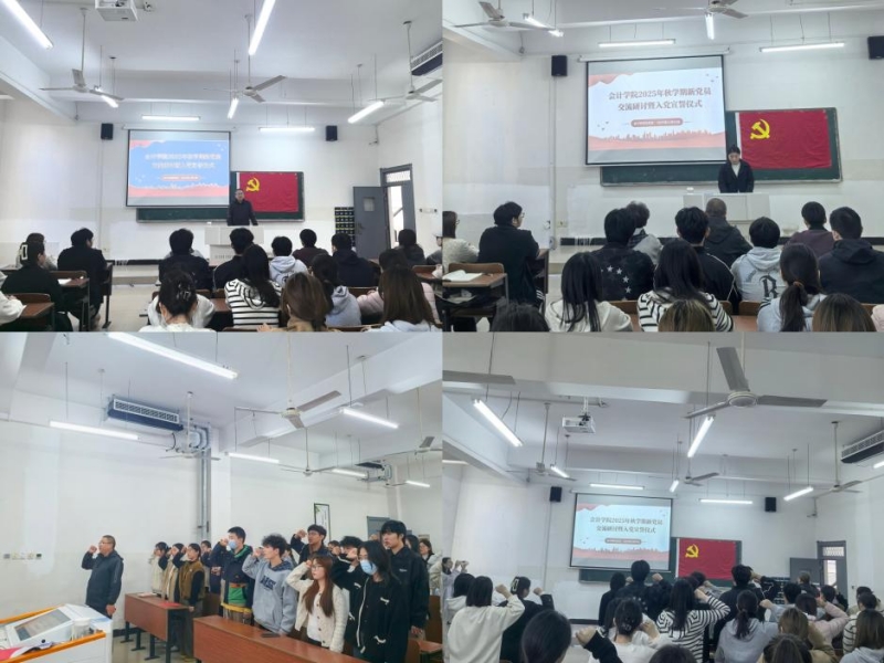 为强化新党员党性修养,10月28日,会计学院党总支举行2025年秋学期新党员交流研讨暨入党宣誓仪式。学院党总支副书记刁建刚、全体新发展预备党员参加仪式。