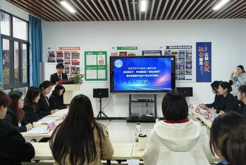 为进一步加强学风建设,引导学生勤学善思,充分展示新时代大学生昂扬向上、奋发进取、团结拼搏的精神风貌,10月29日下午,商贸学院在躬行社区党员空间站开展“班团建设树榜样,优良学风育新人”学风建设之“评估视角下的学风建设”主题辩论赛决赛。