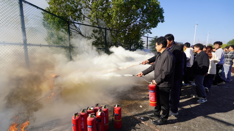 活动现场,消防科科长毛召领给大家进行消防安全培训,重点围绕如何防范火灾隐患、扑救初起火灾和提升疏散逃生技能;同时对灭火器的使用方法(提、拔、握、压)和注意事项等消防安全常识进行现场教学和示范。在演练环节,安全管理处点燃“火桶”模拟火灾现场,各学院列队分组,逐一上前操作灭火器对“火桶”实施灭火;让师生感受“灭真火”的实操体验,学会“见火不慌、抬手就灭”的消防技能。通过此次灭火实战实操演练,真正提升了参训人员在面对初起火灾的应急处置能力。