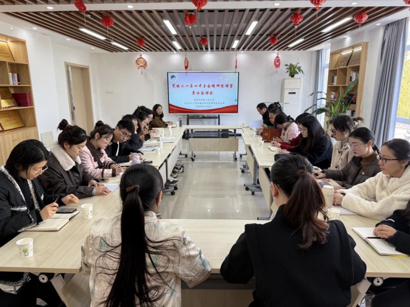 为深入学习贯彻党的二十届四中全会精神,推动党建工作与教学实践深度融合,提升课程思政育人实效,11月26日下午,商贸学院教工党支部与马克思主义学院概论和形策教研室党支部联合举办集体备课会。备课会围绕党的二十届四中全会精神进课堂展开深入研讨。双方支部委员及党员教师代表共同参与。