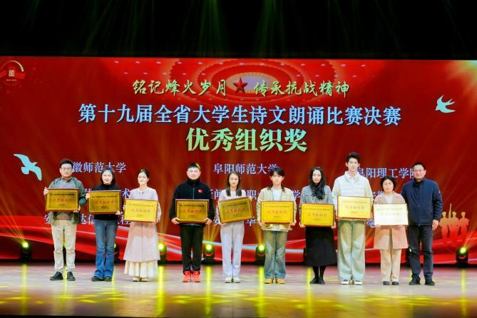 11月26日至28日,由安徽省教育厅主办、安徽师范大学与安徽省朗诵艺术学会联合承办的第十九届全省大学生诗文朗诵比赛圆满落幕。我校艺术学院播音与主持艺术专业学子表现亮眼,勇创佳绩。原创作品《艾青组诗》荣获专业组二等奖,《向太阳(节选)》《额尔古纳河右岸(原创)》斩获专业组三等奖,学校荣获“优秀组织奖”。