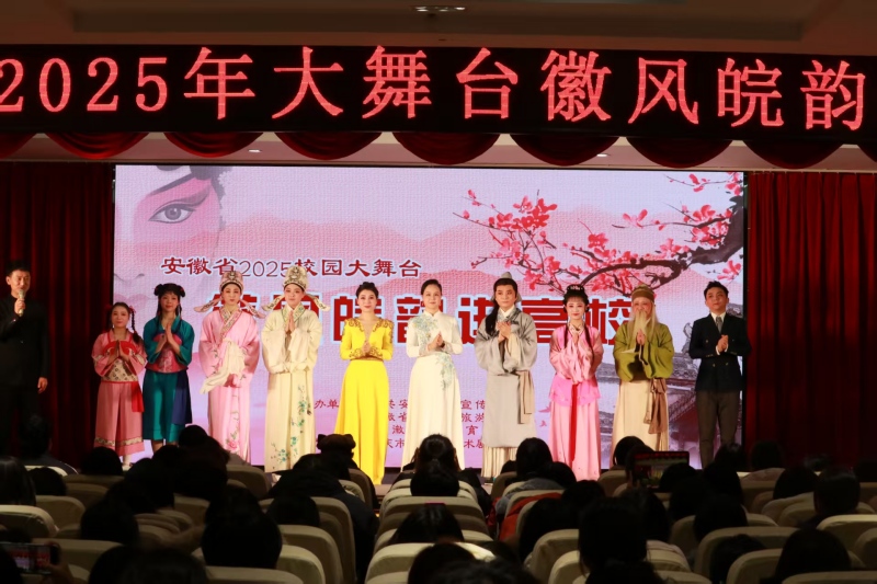 为推动中华优秀传统文化创造性转化、创新性发展,让地域文化瑰宝在青年学子心中扎根结果,12月4日下午,由省委宣传部、省教育厅、省文化和旅游厅联合主办的2025年校园大舞台—徽风皖韵进高校文达专场演出在我校图书馆五楼学术报告厅顺利举办,350余名师生观看了演出。