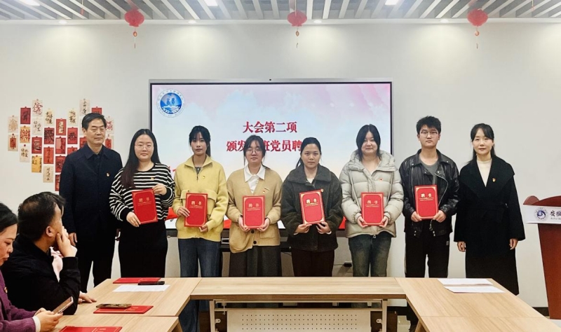 教工党支部副书记张春玲与学生党支部书记周影分别介绍了12名师生驻班党员的基本情况。教师党员中,既有深耕教学科研的省级教坛新秀,也有指导学生竞赛屡获佳绩的骨干教师;学生党员则多为获得国家级奖项、社会实践经历丰富的优秀学子,充分彰显了驻班队伍的示范性与引领力。随后,与会领导为12名驻班师生党员颁发聘书。