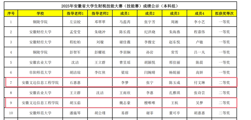近日,在2025年安徽省大学生财税技能大赛中,我校学子表现出色,共获得一等奖2项、二等奖4项、三等奖5项。本次大赛由安徽省财政厅、省教育厅联合主办,吸引省内外多所高校参与,是展示大学生财税专业能力的重要平台。