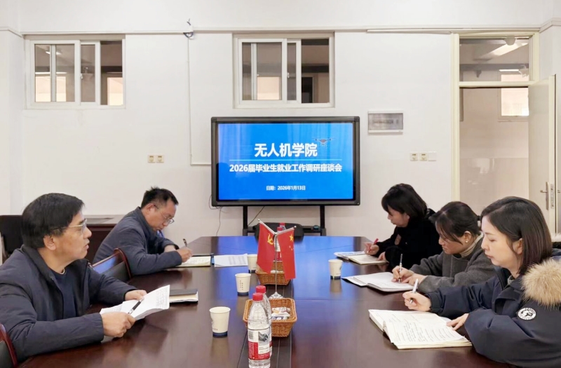 1月13日下午,副校长袁文龙深入无人机学院专题调研指导2026届毕业生就业工作。招生就业处处长刘宏陪同调研,学院院长李穗、副院长李梦,就业专干及毕业班辅导员参加会议。
