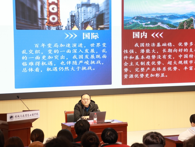 宣讲中,姜玉齐从全会召开的时代背景、重大意义切入,系统阐释了党的二十届四中全会作为“即将进入基本实现社会主义现代化夯实基础、全面发力关键时期”召开的重要会议的核心要义,深入解读了《中共中央关于制定国民经济和社会发展第十五个五年规划的建议》中关于指导思想、主要目标、战略任务的部署要求。同时,结合安徽省委十一届十一次全会精神,姜玉齐立足安徽“创新资源富集、制造特色鲜明、内陆腹地广阔、生态资源良好、文化底蕴深厚”的发展基础,详细解读了我省在打造科技创新策源地、新兴产业聚集地、改革开放新高地、经济社会发展全面绿色转型区等方面的实践路径,以及“4个新突破+3个新的更大进展”的发展目标,让现场师生对全会精神与安徽发展蓝图有了全面且深刻的认识。