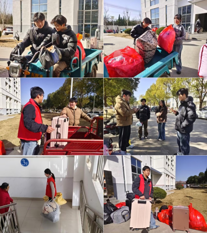 寒假启幕,当大部分学子踏上返乡归途,校园逐渐宁静之际,19栋学生宿舍内却是一片热火朝天的繁忙景象。为改善学生住宿环境,19栋宿舍将于寒假期间进行全面改造升级,为协助同学们妥善安置行李,艺术学院积极响应,迅速组织了一支由优秀学生党员、团员青年骨干、学生会干部等构成的志愿者服务队,开展了一场温暖而高效的“助力搬迁”志愿服务行动。