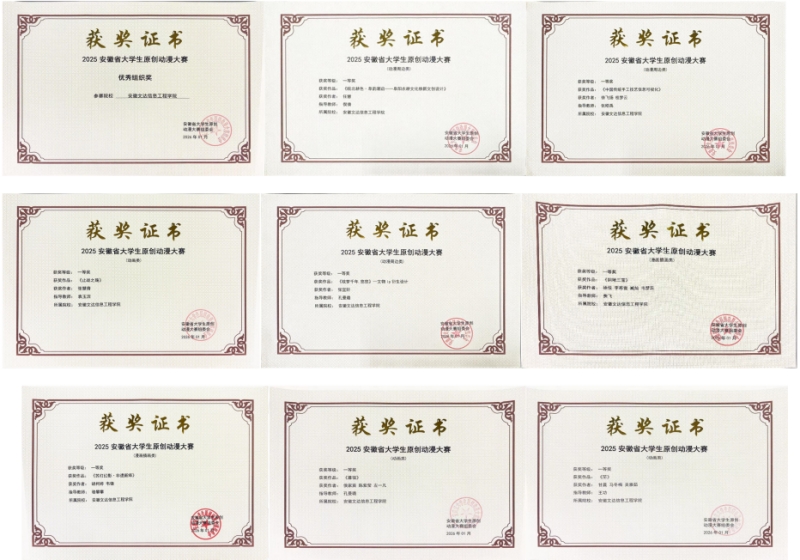 近日,2025安徽省大学生原创动漫大赛获奖名单正式公布,安徽文达信息工程学院艺术学院学子在此次赛事中表现亮眼、斩获颇丰,共揽获50项奖项,其中一等奖8项、二等奖13项、三等奖29项,获奖作品覆盖漫画、动画等多个类别。同时学院荣获“优秀组织奖”,7位教师获评“优秀指导教师”,充分彰显了该院在动漫人才培养领域的扎实成效。