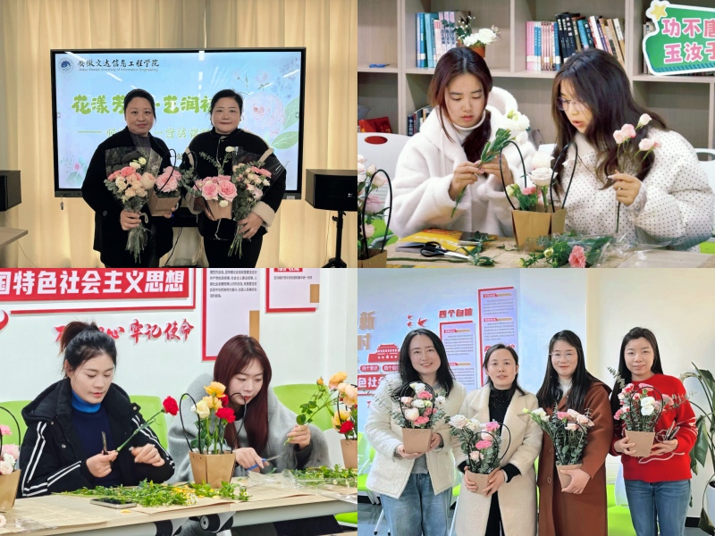 活动以“花漾芳华,艺润初心”师生美育插花课温情启幕。艺术学院陈玉菡老师受邀授课,围绕花材甄选、修剪技法、造型设计等核心要点细致讲解,专业传授花艺美学知识与实操技巧。我校女性教师与女学生代表参与其中,动手创作、交流探讨,将巧思与心意融入花材搭配,打造出一件件独具匠心的插花作品。创作完成后,师生手持成果合影留念,在沉浸式花艺体验中舒缓身心、拉近距离,让女性师生真切感受节日的温馨与美好。