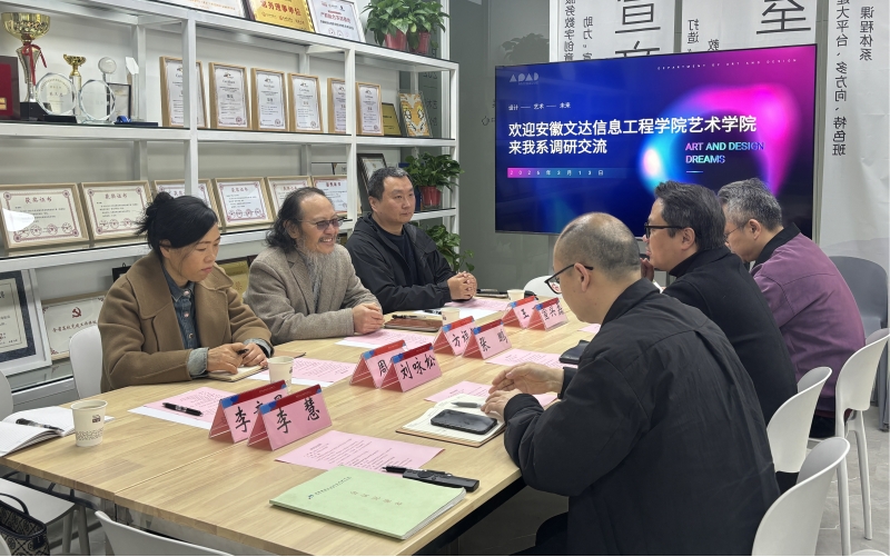 交流会上,双方围绕艺术设计类专业建设、人才培养模式、实训基地搭建、产教融合路径等核心议题展开深入探讨。方福颖介绍了学院的发展历程、办学特色、师资结构及学科建设成果,重点分享了学院在应用型艺术人才培养、微专业建设及实习实训基地共建等方面的经验做法。安徽新闻出版职业技术学院相关负责人详细介绍了该校在艺术设计、新闻出版类专业的办学优势,以及在课程体系优化、实训教学改革、校企合作等方面的创新举措。
