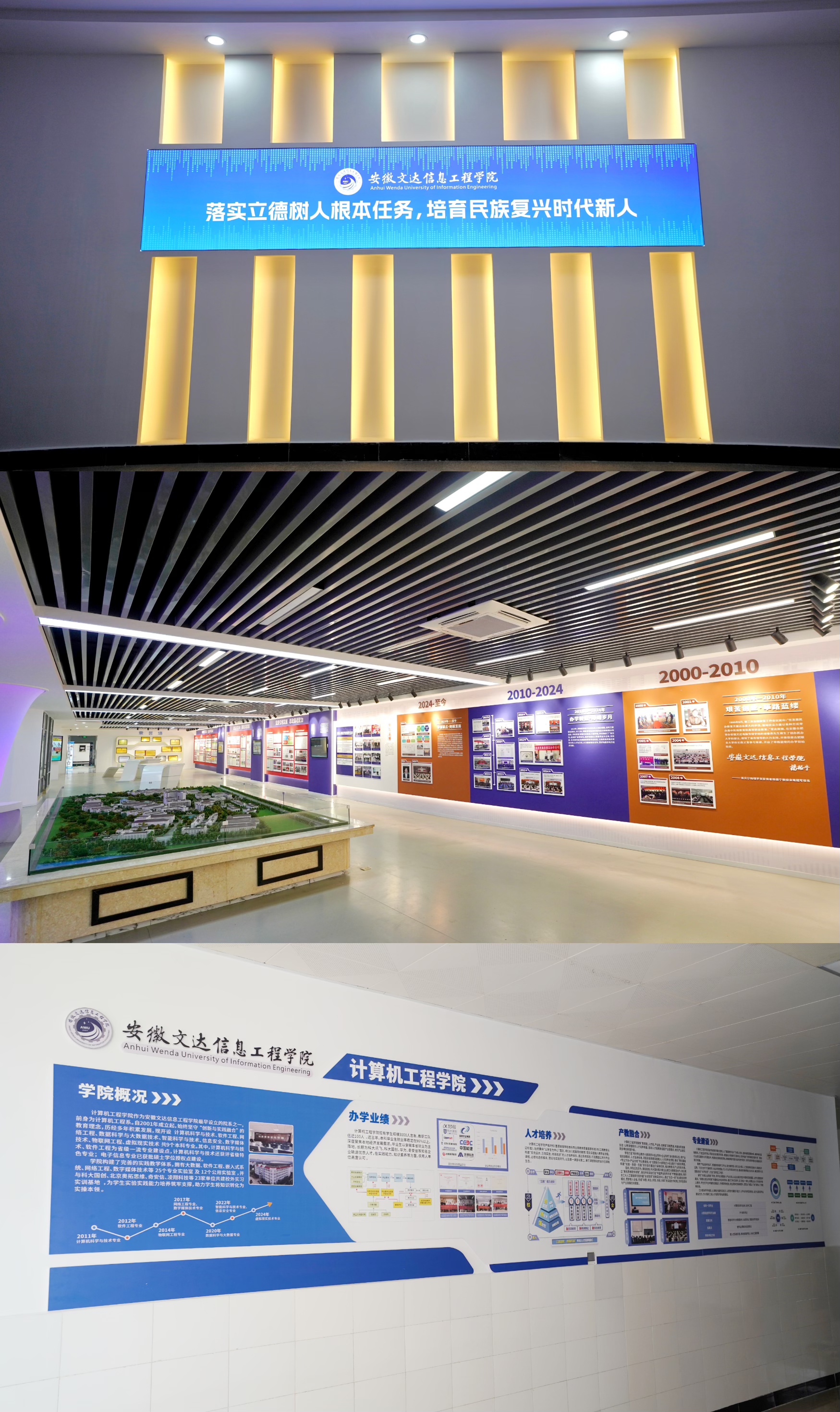 打造审核评估专题展厅,立体呈现办学成就。宣传部精心设计并建成本科教育教学审核评估专题展厅,展厅面积达500平方米,涵盖发展历程、领导关怀、党建思政、教育教学、人才培养、优秀校友、媒体报道、荣誉墙、创新创业教育成果等核心板块。在建设过程中,全面完成空间设计、施工与安装工作,精准核对1.5万余字文字材料和260余张图片,确保展示内容准确生动。同时,组织专业团队反复打磨解说词,开展多轮讲解演练,实现文鼎楼二、三楼展示效果的连贯统一。此外,统筹各二级学院同步更新本院宣传栏,形成校院联动、层次分明的展示格局。