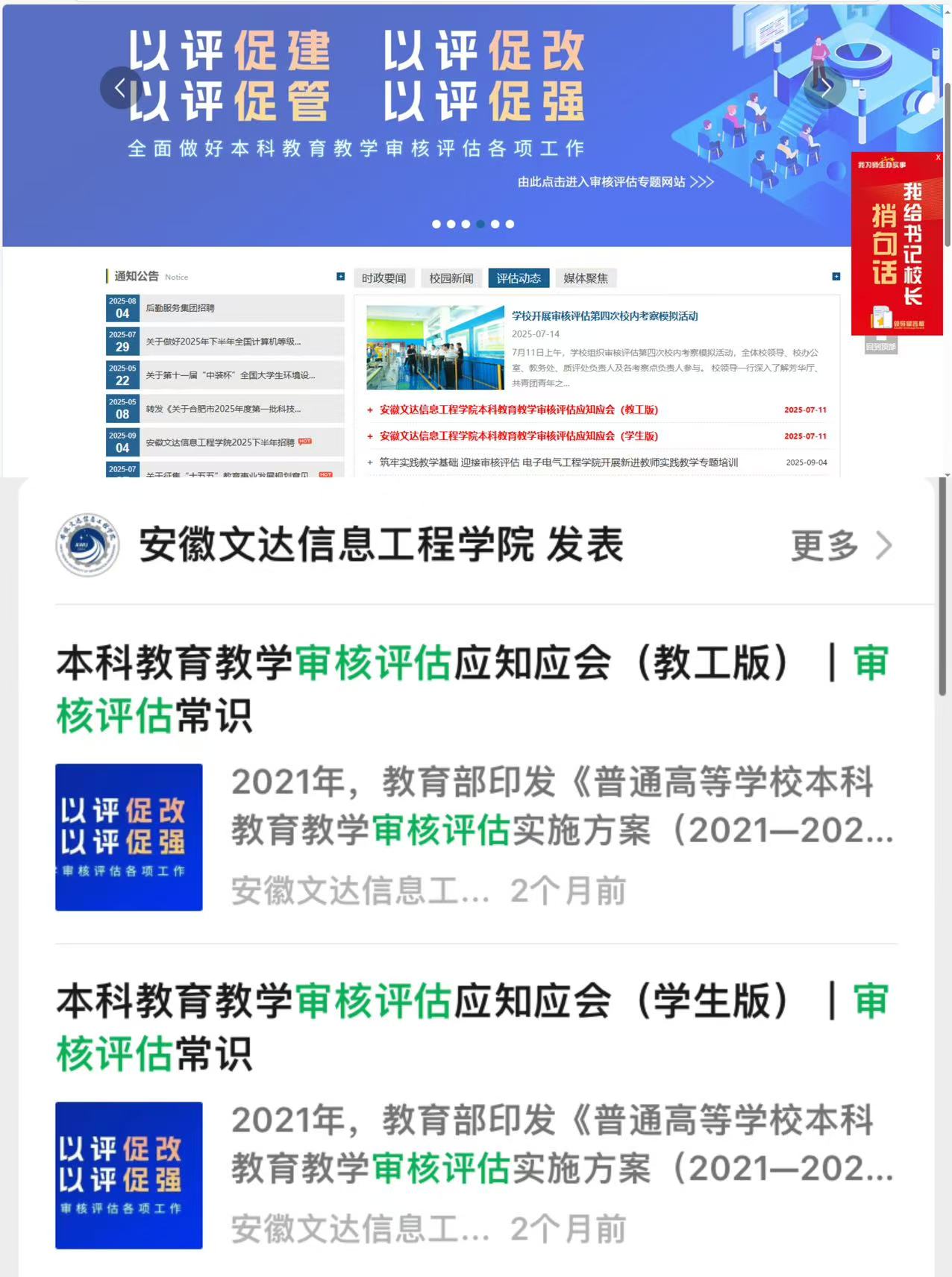 构建新媒体传播矩阵,精准推送评估知识。充分发挥新媒体平台优势,通过校园网站、微信公众号等平台,定期发布审核评估应知应会知识。采用长图解读、互动问答等师生喜闻乐见的形式,系统介绍评估基本理念、学校办学特色和教学成果,切实提高师生对评估知识的掌握程度,增强迎评工作的思想自觉和行动自觉。