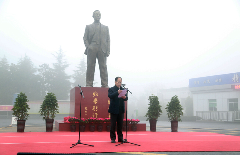 他强调,我校是一所以工科为主体的综合性本科高校,树立王选院士的雕像,是为了更好地弘扬王选精神,打造王选文化。这对于浓郁校园学术氛围,推进学校创新发展,提升学校办学水平必将产生重要影响。当前学校正处于迎接教育部本科高校教学工作合格评估的关键时期,学习王选精神,对于营造爱岗敬业、勇于追梦的校风、教风、学风,践行“明德至善 勤学躬行”的校训,加强师德师风建设,培养学生科学人文精神都将起到积极的推动作用。学校将以雕像落成为契机,进一步营造浓厚的科研和学术氛围,弘扬尊师爱生、贵信崇艺的良好风气。希望同学们刻苦钻研,勇攀高峰,努力成为社会需要的具有良好职业道德、业务过硬的应用型人才;希望广大教师以王选为榜样,提升专业素质,提高教学水平;全校教职工要大力弘扬王选精神,为实现高水平应用型本科高校目标而努力奋斗。