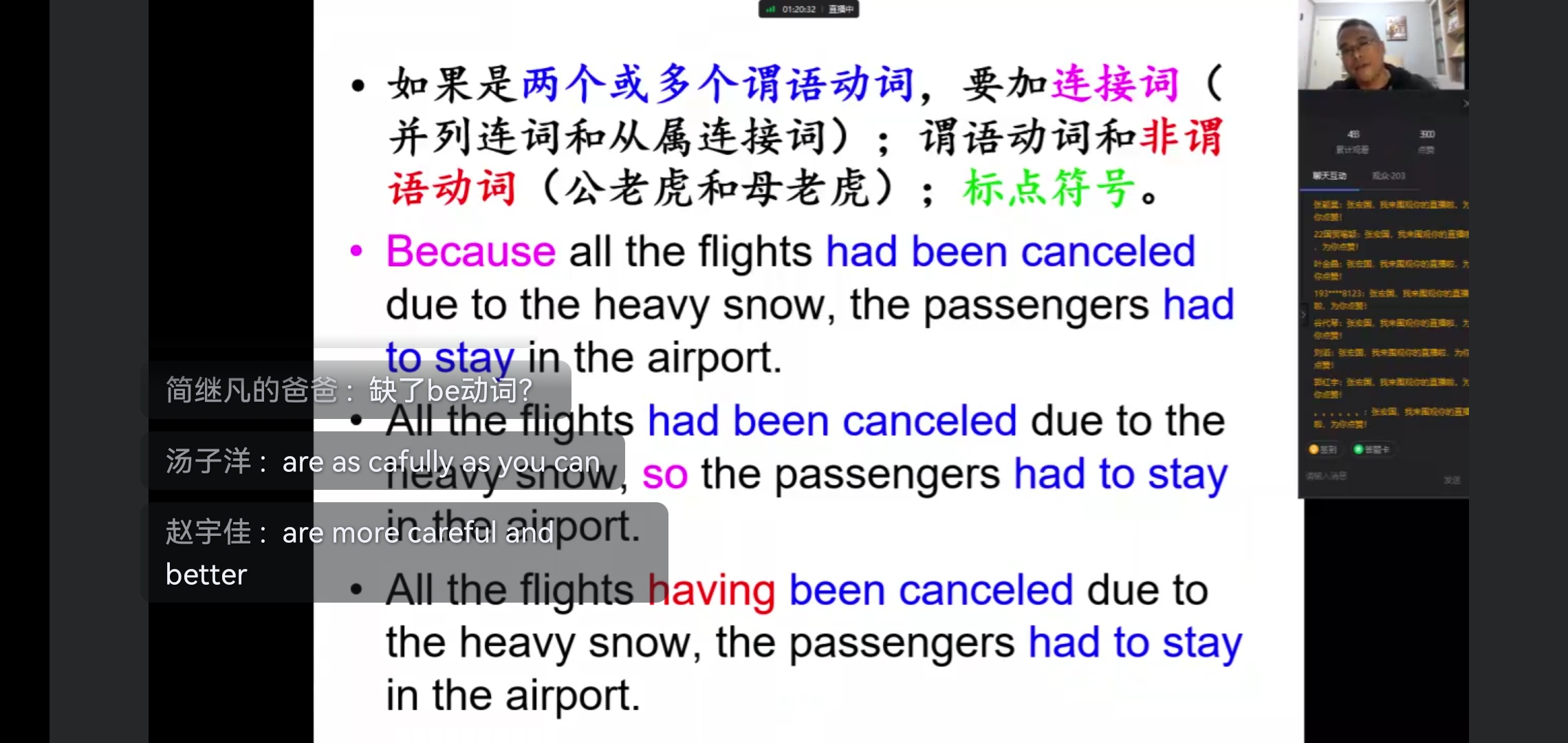 张教授凭借多年的教学和四、六级阅卷经验,帮助同学们在考前重新梳理答题流程、讲解应试技巧,并针对阅卷中积累的大量素材,举例论证,着眼细处,“手把手”教同学们如何处理考试中的翻译难题。尽管讲座以线上方式举行,但丝毫阻挡不了同学们的学习热忱,大家在留言区与张教授积极互动,氛围热烈。