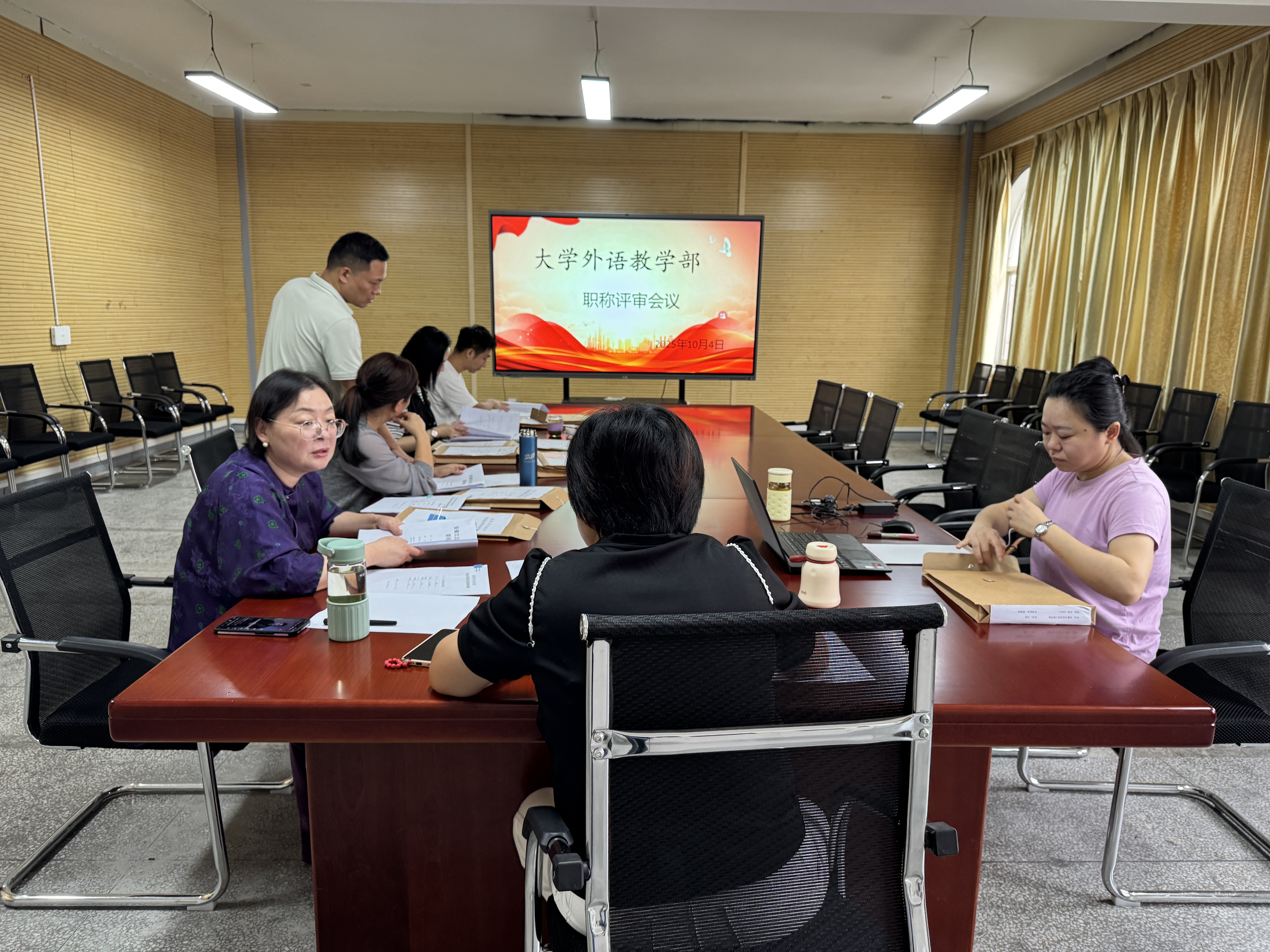 10月4日,大学外语教学部召开2025年度职称评审会议。会议严格遵循安徽省教育厅 安徽省人力资源和社会保障厅关于印发《安徽省普通本科高等学校教师专业技术资格申报条件》相关文件要求,以“公平、公正、透明、择优”为原则,组建以孔标主任为组长,以及8名副教授的评审小组参与评议。