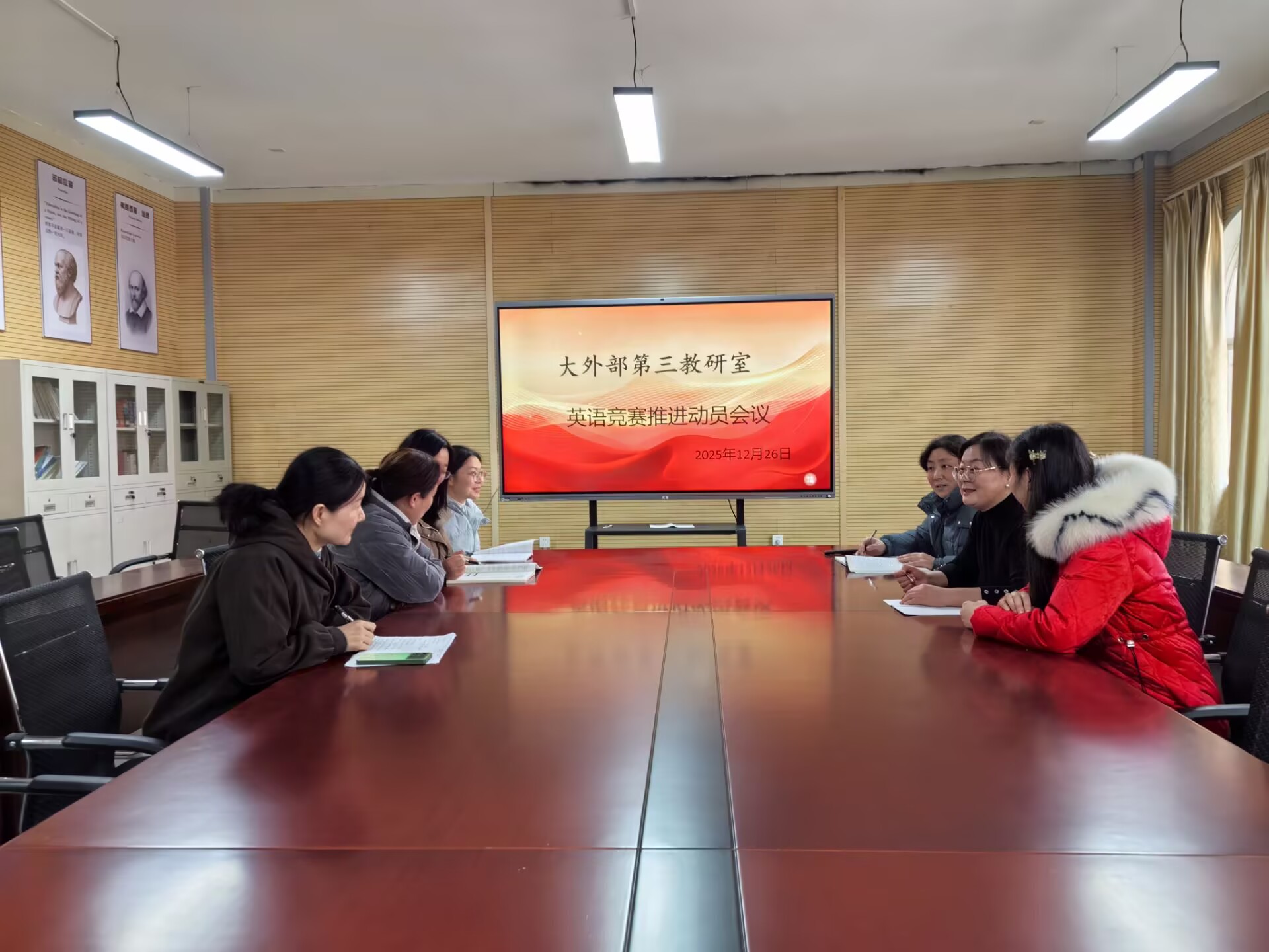 2025年12月26日,大学外语教学部第三教研室成功召开英语竞赛推进动员会议。本次会议旨在进一步推动学生参与各级各类英语竞赛,提升英语应用能力与综合素养,营造积极向上的学习氛围。
