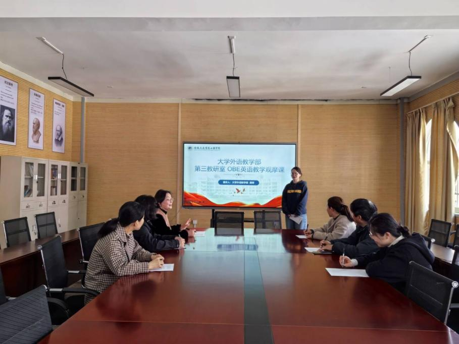3月25日,大学外语教学部第三教研室组织了以“OBE理念融入教学”为主题的观摩课活动,薛婷老师为大家呈现了一堂精彩纷呈的英语课。薛老师紧扣OBE(成果导向教育)理念,从学生的学习成果出发,反向设计教学内容与活动。她巧妙创设真实语言情境,引导学生积极参与讨论、角色扮演,在互动中提升语言运用能力。