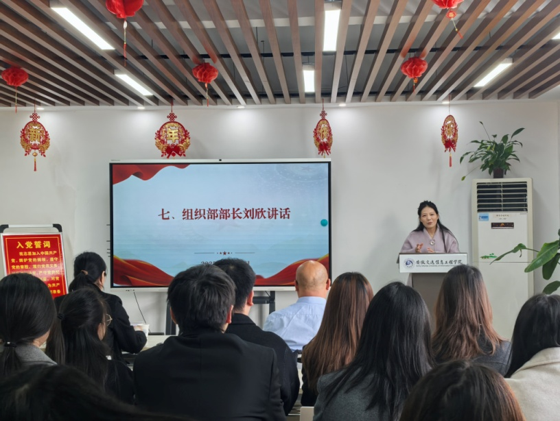 赵玉芳在讲话中向新党员表示祝贺,并对到场观摩的兄弟学院同仁表示感谢。她指出,本次仪式既是对新党员的集中教育,也是一次促进校际党建工作交流的重要契机。随后,她向新党员提出四点希望:筑牢思想根基,做政治坚定的“明白人”;深耕专业领域,做本领过硬的“带头人”;坚守初心底线,做清正廉洁的“干净人”;强化责任担当,做服务群众的“贴心人”。
