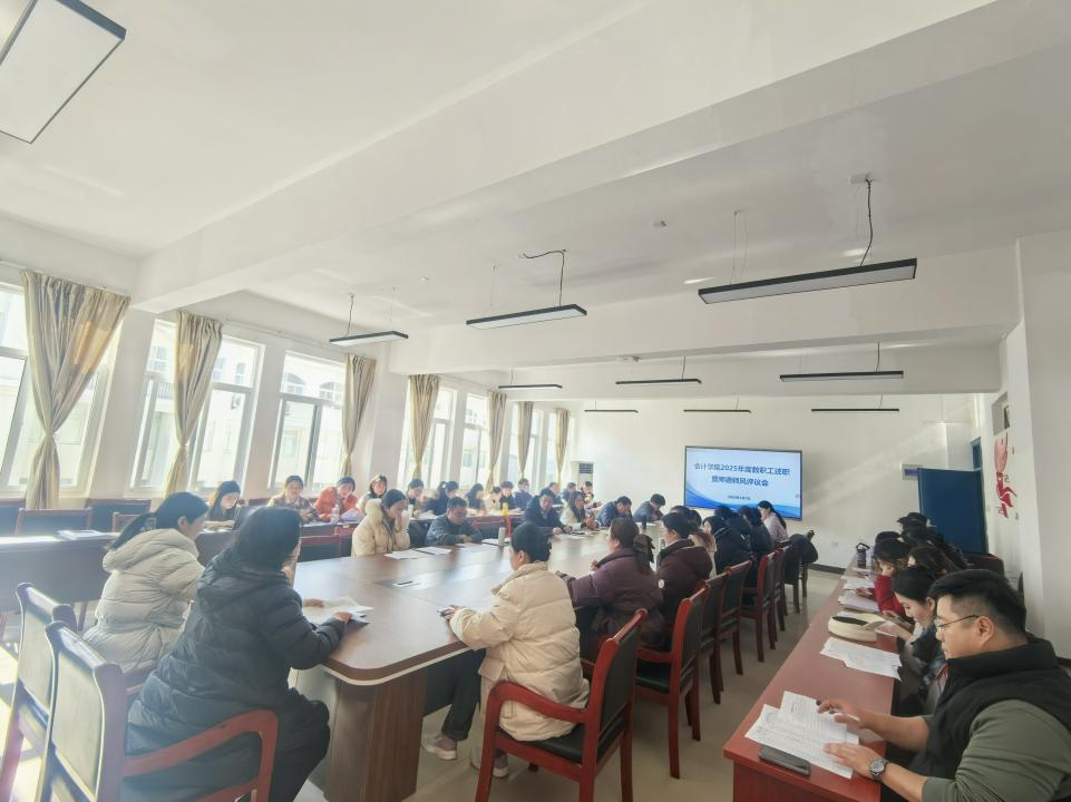 为全面总结2025年度工作成效,进一步加强师德师风建设,提升师资队伍整体素质,1月7日,会计学院在学院会议室召开2025年度教职工年终述职与师德师风评议会。会议由执行院长石惠惠主持,党总支书记赵玉芳及全体教职工参会。