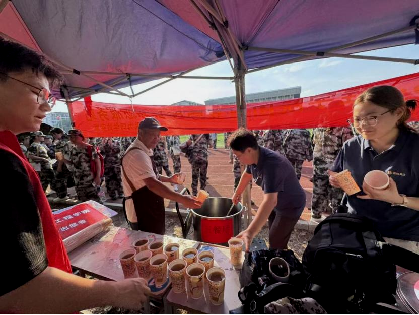 训练间隙,后勤生活服务中心及时送来了绿豆汤,工作人员现场为新生分发绿豆汤,给新生送来暖心问候,让离家的新生感受到了如家般的温暖。一位来自外省的新生感慨道:“虽然军训很累,但看到后勤的叔叔阿姨们为我们送来“暖心汤”,服务这么周到,使我们非常感动,这里就像我的第二个家。”