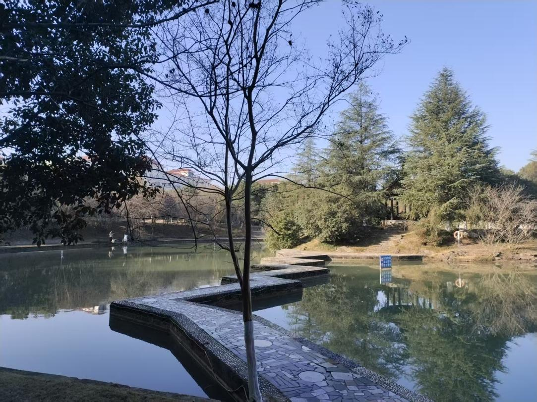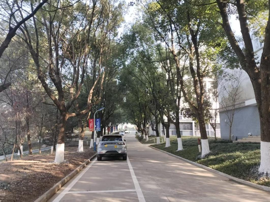 后勤集团克服低温天气,加强精细化保洁与巡查维护,确保室内室外无积存垃圾、无卫生死角;绿化养护人员巧手匠心,对常绿植物进行精心修整,主干道两侧行道树干皆已刷白;香樟、桂花、广玉兰枝头繁茂,青松、石兰、冬青树郁郁青青,让肃穆的冬日焕发出盎然生机与浓郁色彩。