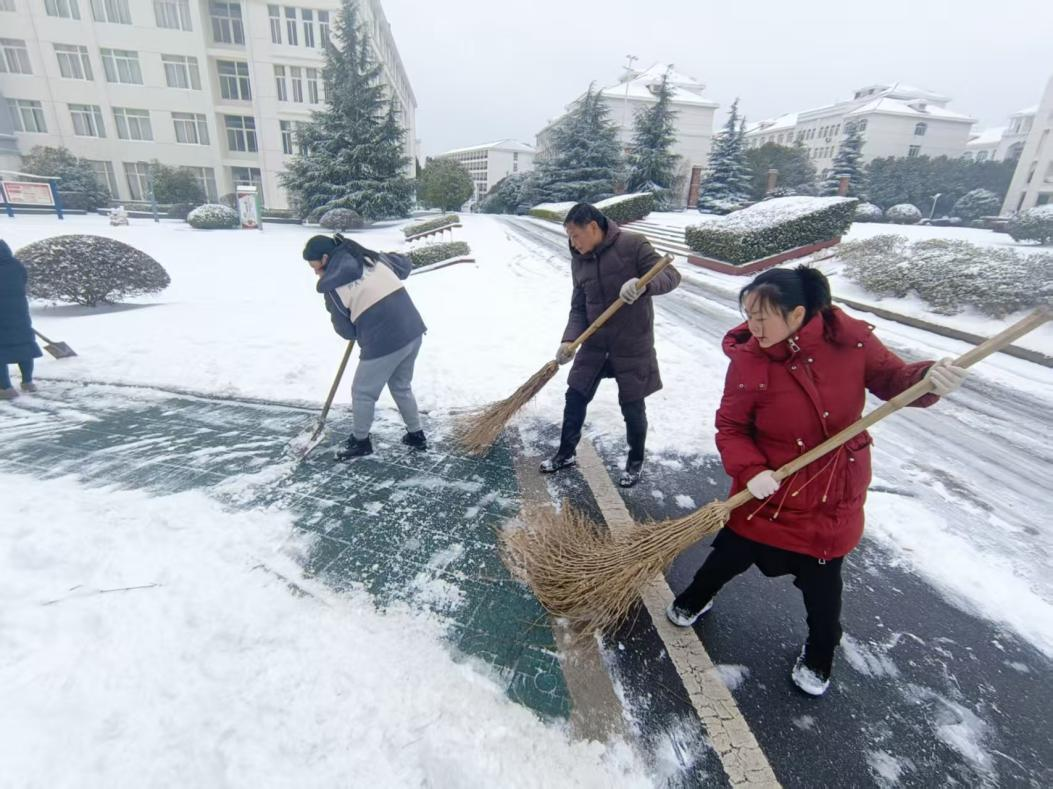 寒风刺骨,热情不减。经过三个多小时的持续奋战,校园主要干道及十余处易滑台阶的积雪结冰被彻底清除,通行安全隐患得以消除,师生出行之路恢复畅通。