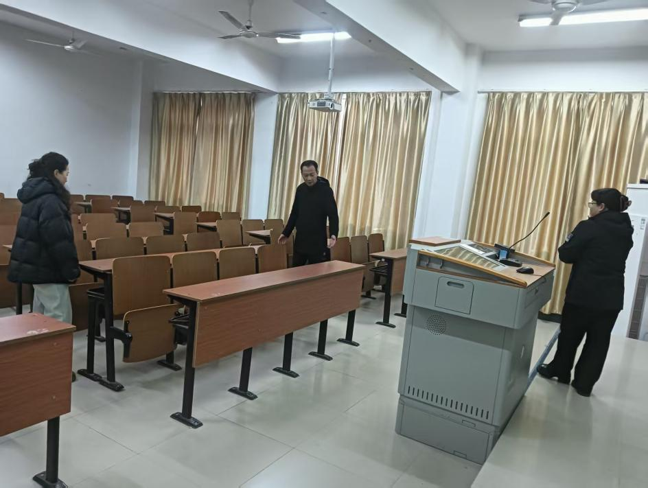 为确保教学秩序正常运行,楼房管理中心将工作重心落在日常巡检与维护上。工作人员加大对教学楼、办公楼水电设施的巡查力度,做到“即坏即修、即报即办”,全力保障水电供应安全平稳。同时,严格做好教学楼公共区域的卫生清洁与消毒通风,为师生提供窗明几净、安全卫生的教学环境。