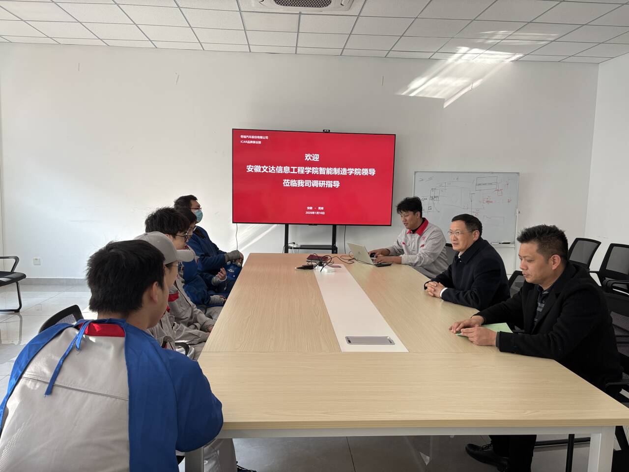 1月16日,智能制造学院院长张家玺、副院长鲍龙星率队前往芜湖奇瑞新能源汽车股份有限公司看望正在企业实习的2026届毕业生,并与企业负责人就产教融合、人才培养等议题展开深度交流,为校企协同育人注入新动能。