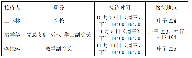 根据校发〔2024〕62号《安徽文达信息工程学院校领导、二级学院及职能部门负责人接待日制度》文件精神要求,为广泛听取师生员工对学院工作的建议意见和利益诉求,切实帮助师生员工解决实际问题,学院落实院领导接待日制度要求,现将院领导接待日有关事项公告如下:
