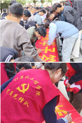 为进一步增强学生防范传销的意识和能力,守护校园安全与学生合法权益,10月22日,计算机工程学院在一站式“笃行社区”举办了“算力不‘算’传销账,青春不陷诈骗网,计算机学子签名护成长”主题横幅签名活动,学院师生积极参与,现场氛围热烈。