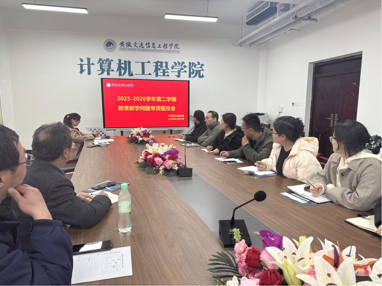 3月18日,计算机工程学院召开教育教学问题专项整改会,针对学生反馈的课堂教学问题进行专题部署。教学副院长王琼佩主持会议,各教研室主任、教学秘书参会。