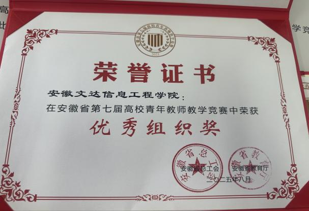 由安徽省总工会、安徽省教育厅联合主办的安徽省第七届高校青年教师教学竞赛圆满收官。安徽文达信息工程学院在此次省级赛事中表现突出,荣获“优秀组织奖”。