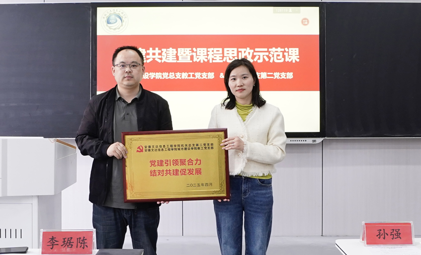 会上,李琚陈书记与城市建设学院教工党支部书记周芸共同举行支部共建签约仪式,正式确立双方“资源共享、优势互补、协同育人”的共建关系;同时,依托机关总支第二支部在教学管理、课程建设中的专业优势,联合启动城市建设学院“大国工程”系列课程思政活动,为基层教学单位课程思政建设搭建交流提升平台。