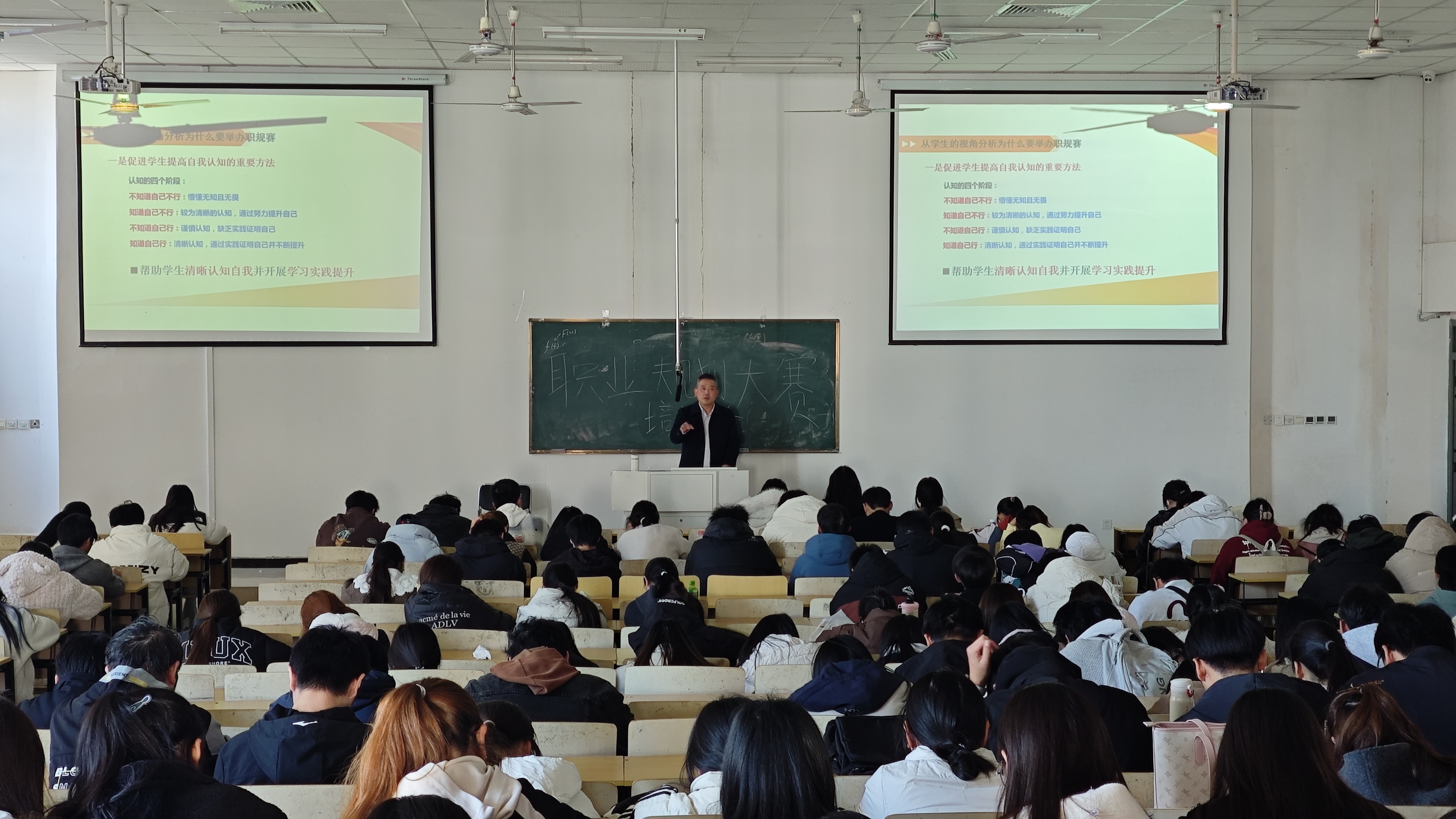 为帮助在校学生锚定职业方向、高效备赛全国大学生职业规划大赛,11月19日,大学生就业创业指导协会组织的职业规划大赛培训动员会在天佑阶梯三如期开展,300余名协会成员到场参与,本次讲座由招生就业处张鑫老师担当主讲。