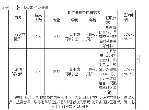 阜阳合肥现代产业园区巢湖路消防站专职消防员招聘公告