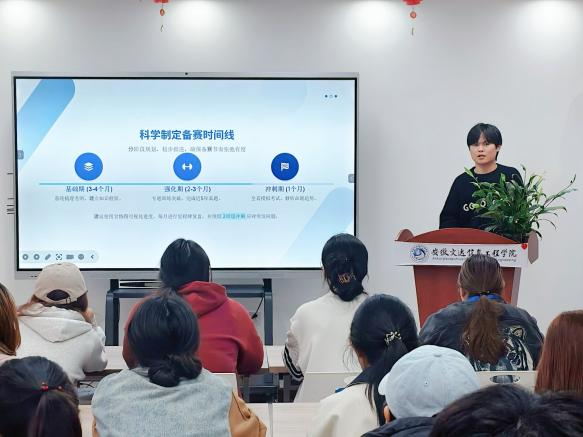 本次分享会特邀学院国家奖学金得主穆轶轶、邹磊,国家级和省级学科竞赛优秀代表顾承永担任主讲。穆轶轶、邹磊围绕专业学习展开分享,从课程重难点突破、知识体系构建到高效复习技巧,细致拆解多课程平衡与学业提升方法;顾承永聚焦学科竞赛,结合备赛经历详解选题、团队协作、心态调整等关键环节,再现从迷茫到获奖的心路历程。分享会氛围热烈、互动频繁。不少同学表示,不仅学到具体技巧,更被学长学姐勤奋争先的精神感染,明确了发展方向,激发了学习动力。