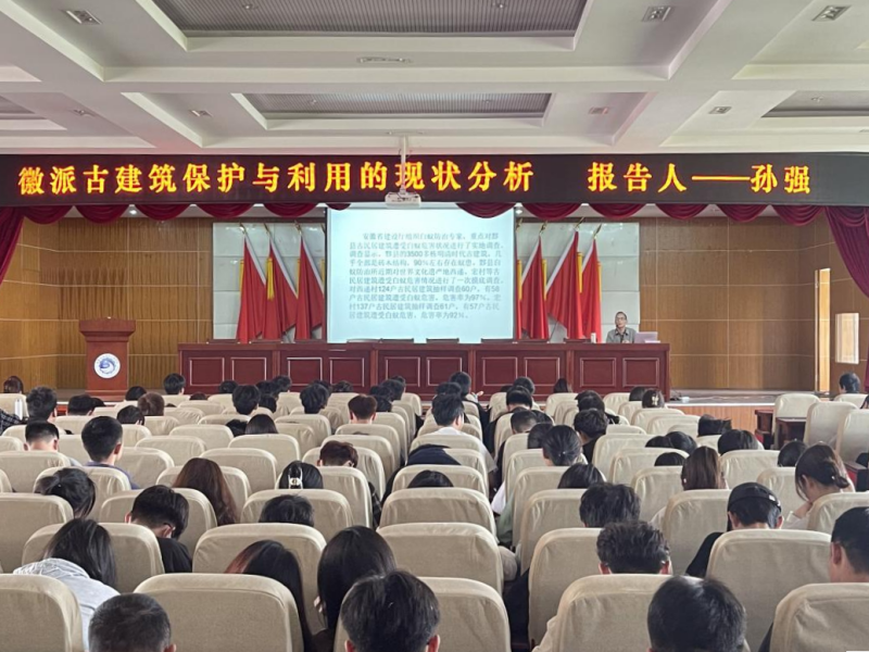 4月12日下午,城市建设学院院长孙强为我校师生开展主题为“徽派古建筑保护与利用的现状分析”线下讲座。