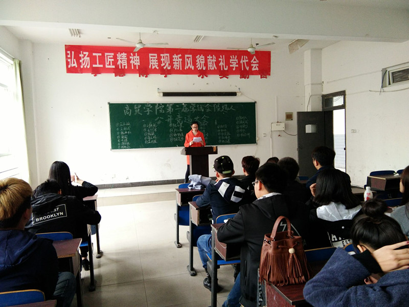 2016年11月9日中午在敬梓楼负一楼商贸学院举行了以“弘扬工匠精神,展现新风貌献礼学代会”为主题的第二届学代会选拔工作,参加本次会议的有院团总支书记徐静静老师,部分学生会成员以及各班级学代会候选人。