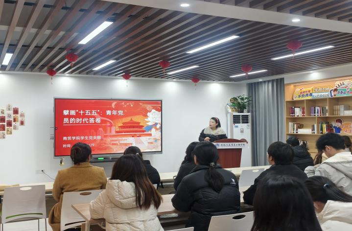 陈薇结合当前时代背景与战略全局,深入阐释了全会的重大现实意义与历史意义,重点解读了“十五五”时期经济社会发展必须遵循的“坚持党的全面领导”“坚持人民至上”等六大原则,以及“建设现代化产业体系”“加快高水平科技自立自强”等七大重点任务。她指出,全会精神为新时代青年成长成才提供了根本遵循和行动指南,号召全体学生党员要自觉将理论学习与实际专业实践紧密结合,主动对接国家发展需求,积极投身数字经济、现代商贸流通等领域,在实践中锤炼过硬本领,努力成长为可堪大用、能担重任的栋梁之材。