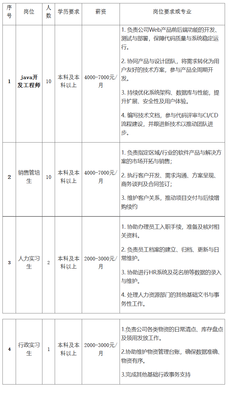 二、招聘职位